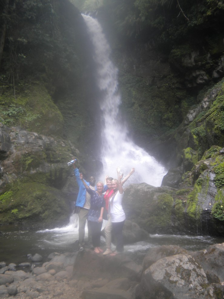 Danach wurden wir zu einem Wasserfall geführt. Das war das Highlight des ganzen Trips. Die gesamte Landschaft dort war atemberaubend und wir haben uns insgesamt eher wie im Regenwald gefühlt, da alles sehr grün und feucht war.
