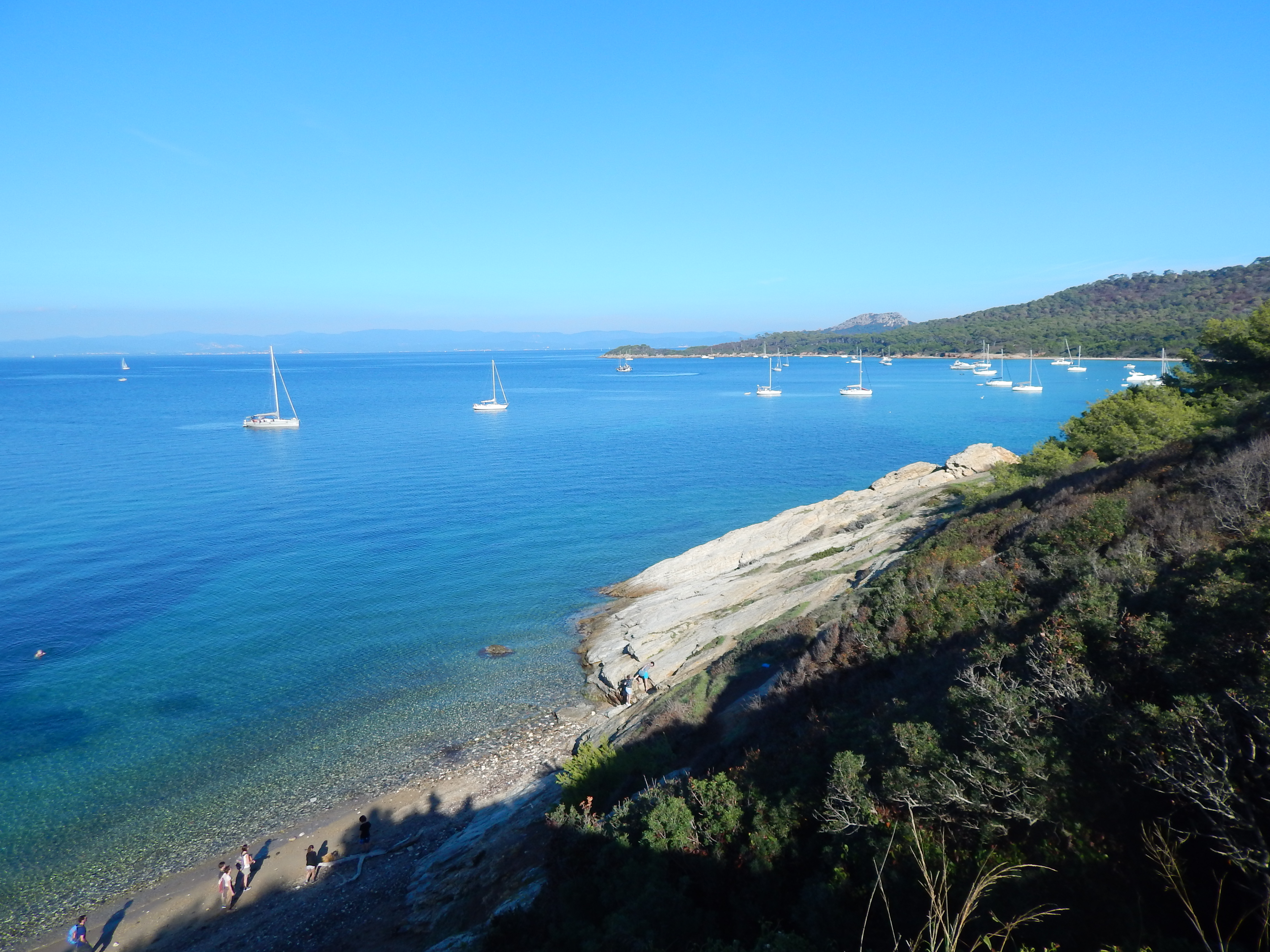 An der Nordseite der Insel befindet sich ein kleiner Hafen und der Inselort mit Restaurants und Geschäften. Hier kommt man auch mit der Fähre von Hyères aus an. Ebenfalls an der Nordseite der Insel befinden sich einige wunderschöne Sandstrände, wo wir unseren Tag in der Sonne verbracht haben.