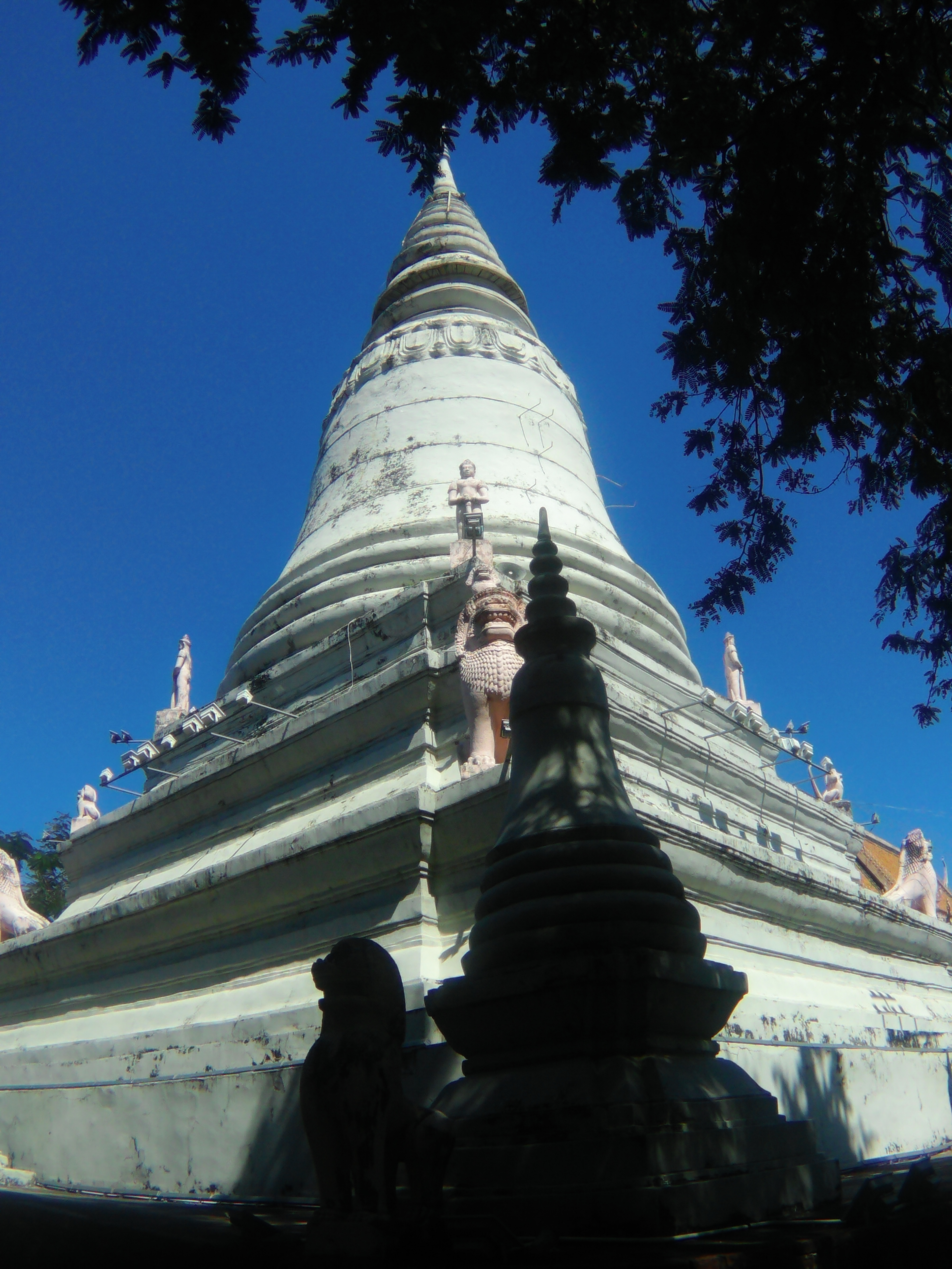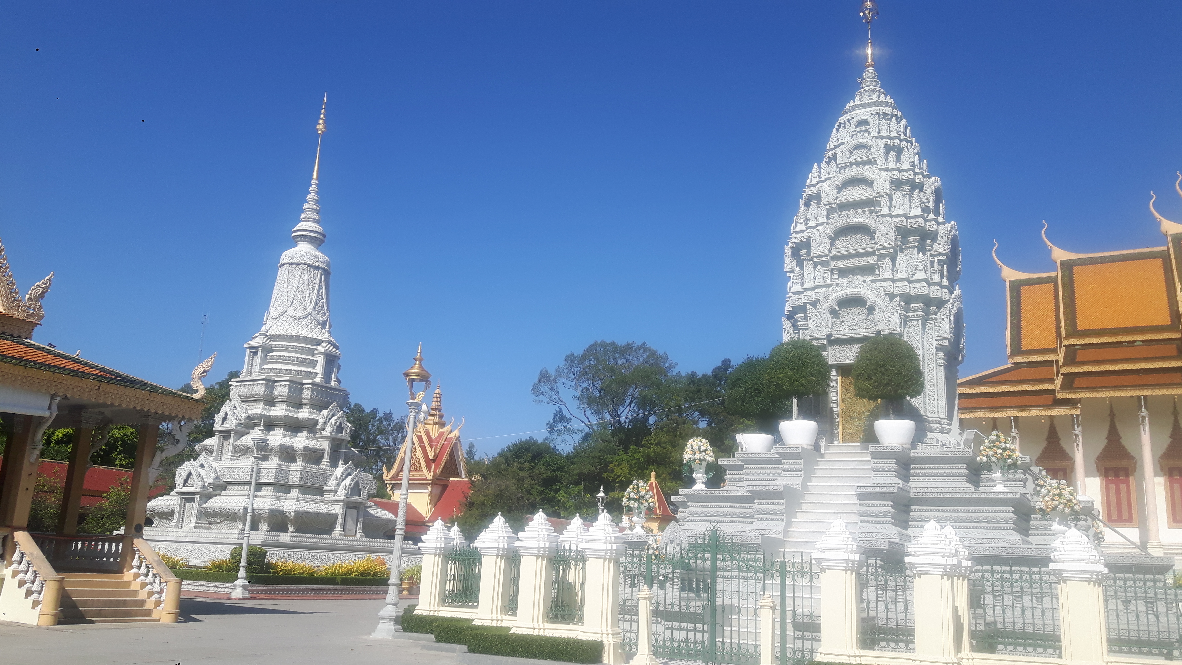 So habe ich gestern eine ausgiebige Sightseeing-Tour zu Fuß gemacht – zum Königspalast mit der Silberpagode, zum Wat Phnom, zum Unabhängigkeitsdenkmal, zum Psar Thmei (central market) und einfach ein bisschen entlang des Mekongs. Ich muss sagen der Markt war für mich schon ein kleines Erlebnis. Hier wird wirklich alles verkauft- von Küchenutensilien, über Kosmetik, Klamotten, Elektronik bis hin zu toten und lebendigen Tieren. Manche Gänge musste ich leider meiden, da mir der Geruch zu extrem war.