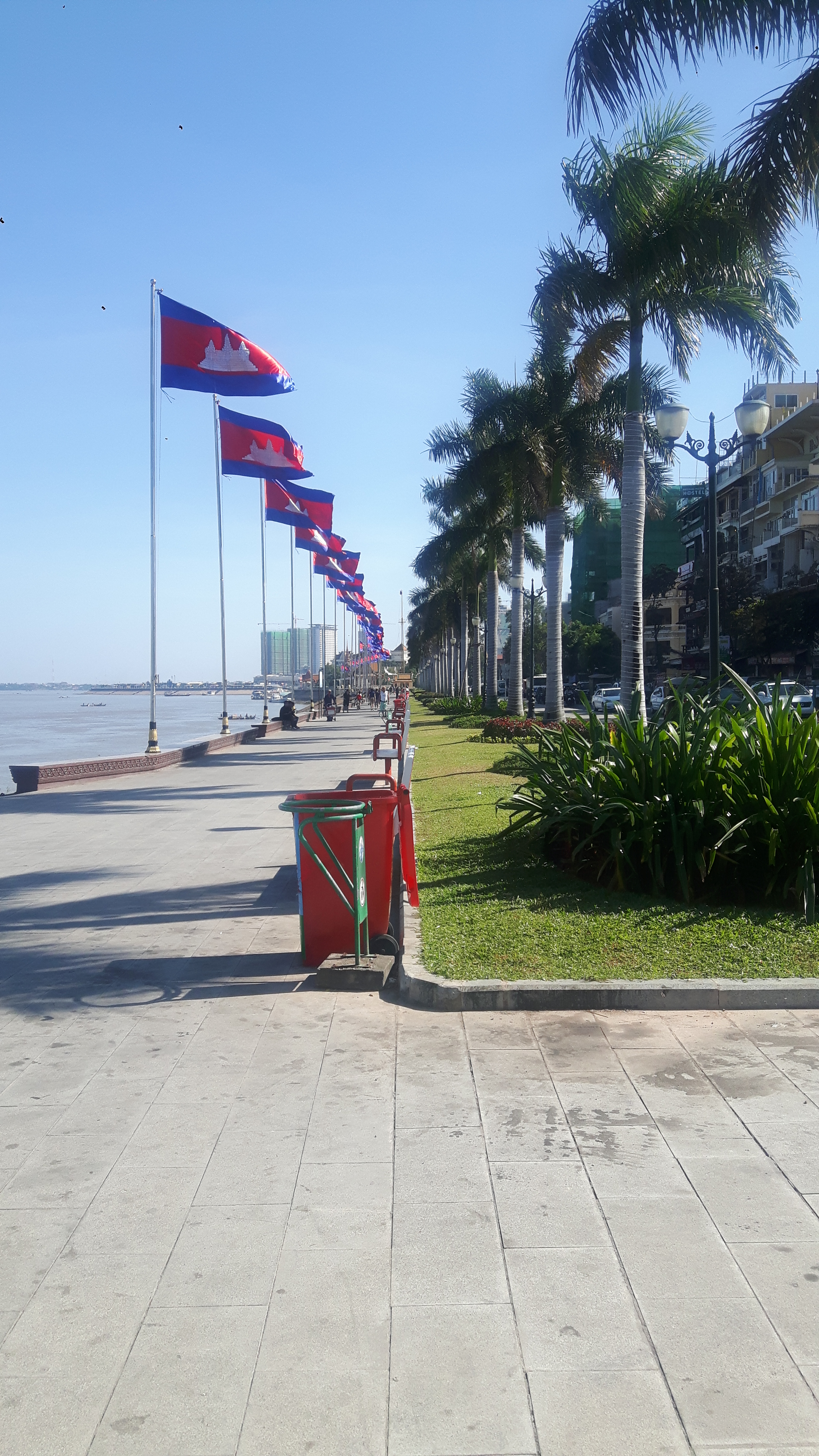 Phnom Penh ist die Hauptstadt Kambodschas und liegt direkt am Mekong. Phnom Penh hat mir auf Anhieb schon mal deutlich besser gefallen als Bangkok. Es gibt mehr grün, die Stadt wirkt gepflegter und die Leute sind total freundlich. Außerdem ist Phnom Penh nicht so groß und überfüllt wie Bangkok. Die meisten Sehenswürdigkeiten liegen in der Innenstadt und man kann sie fußläufig erreichen.