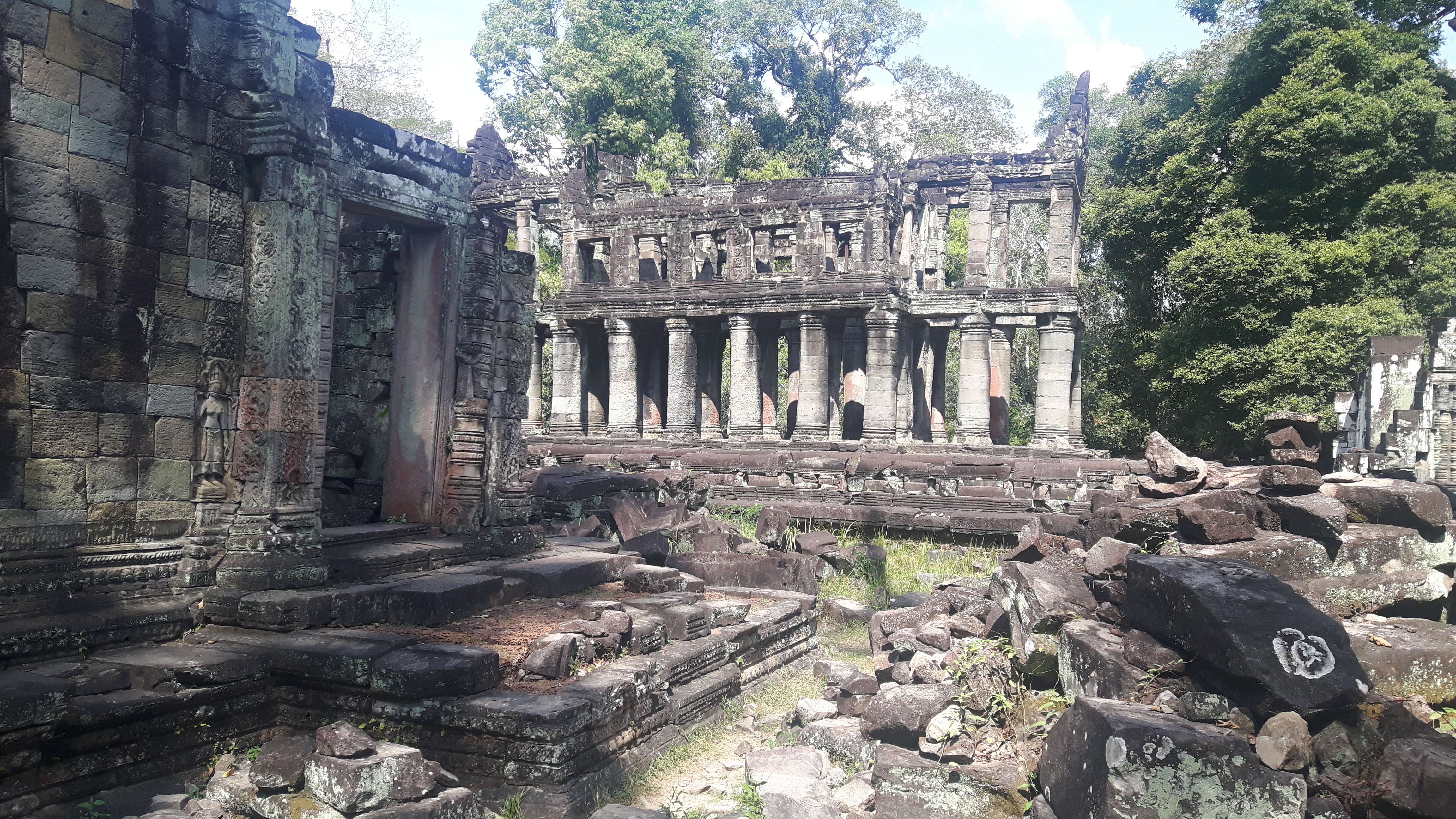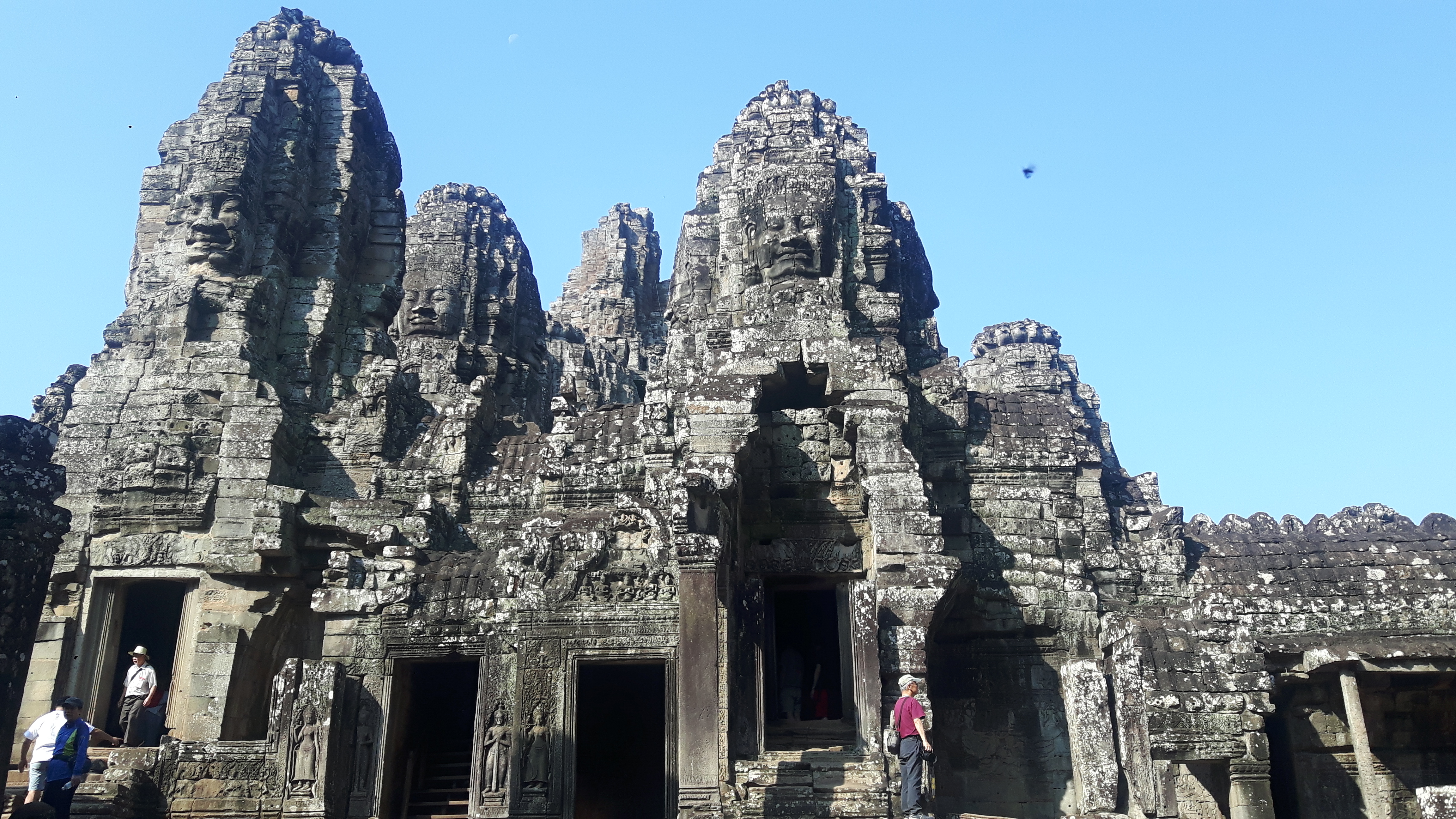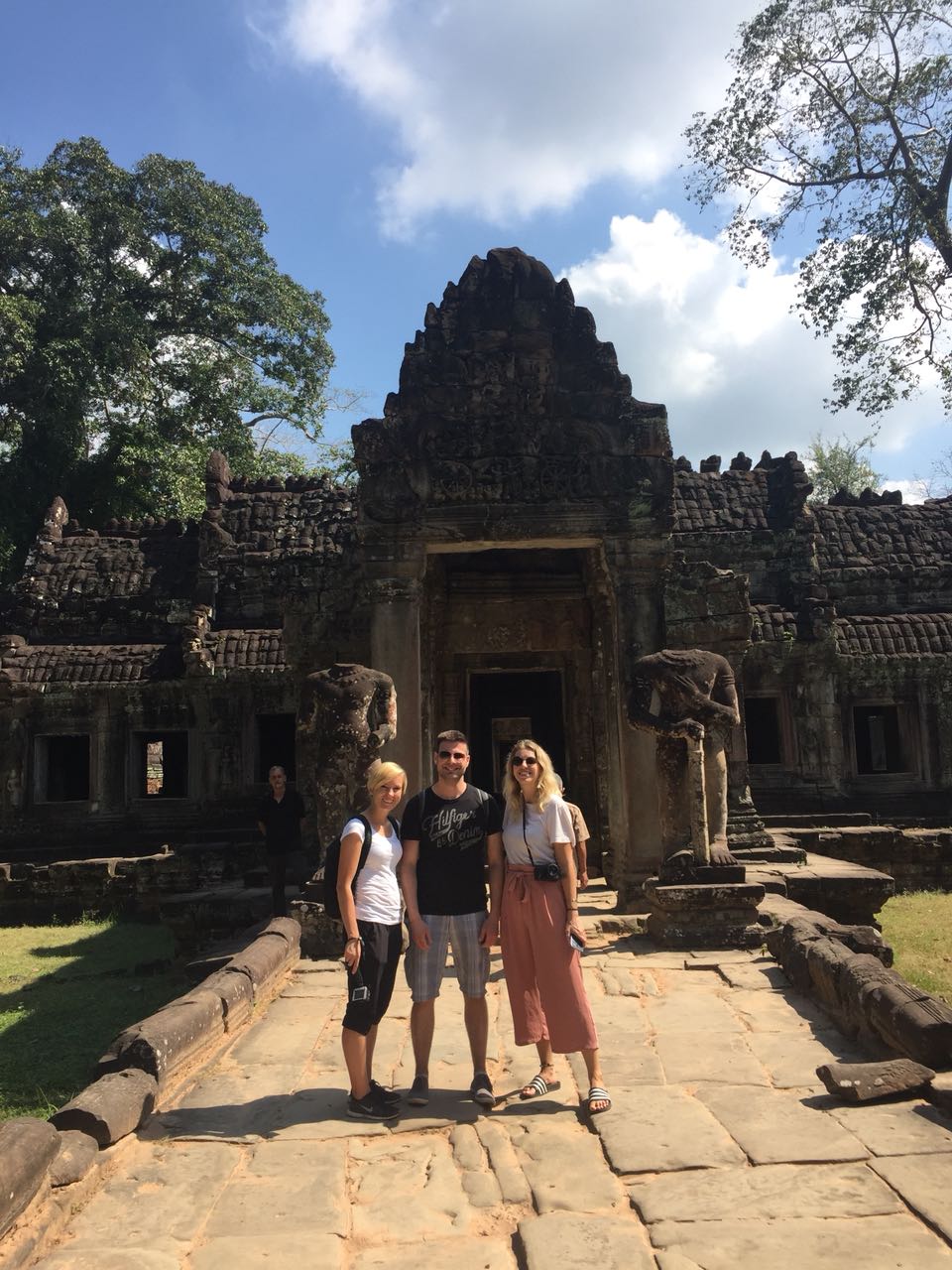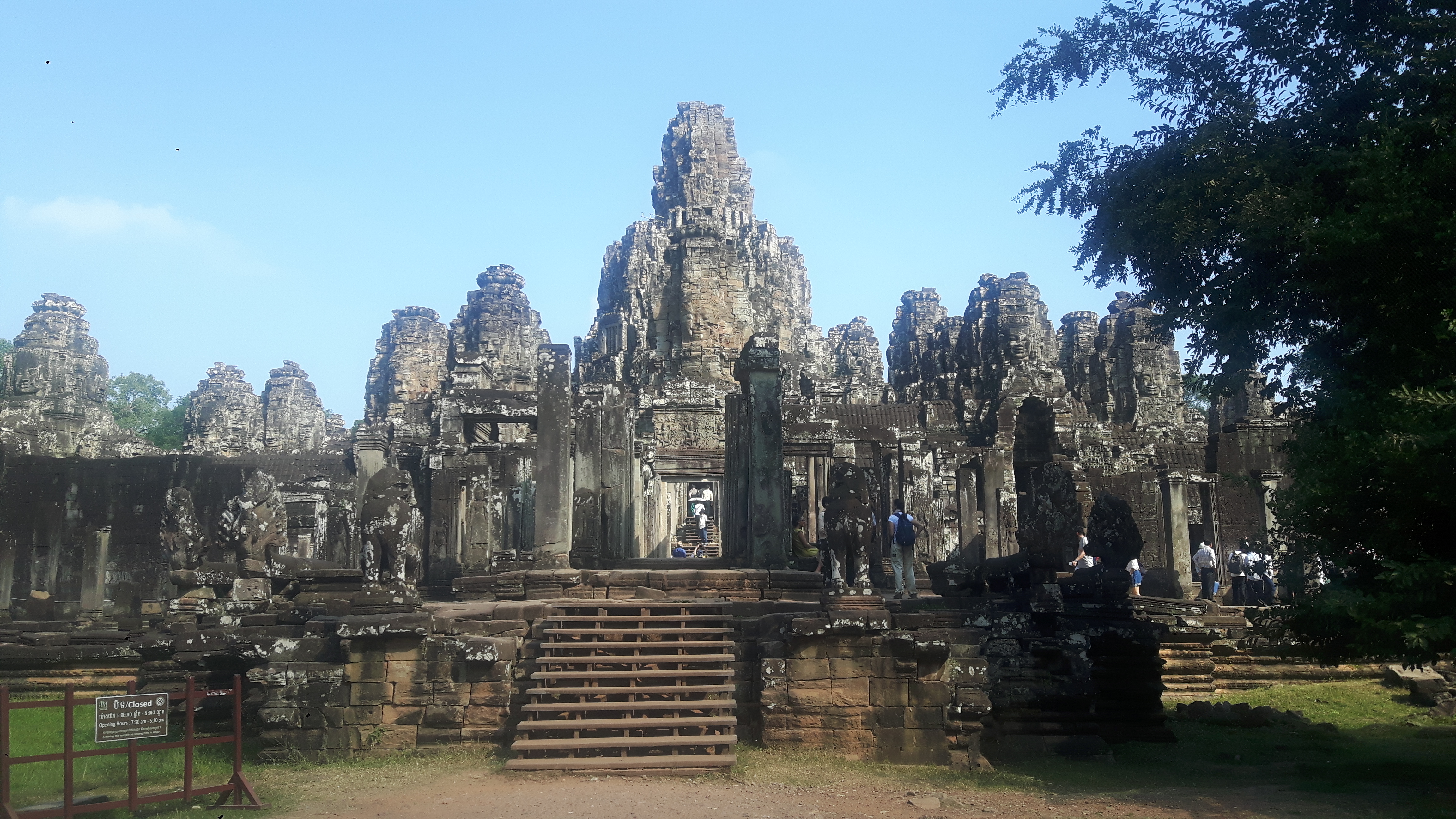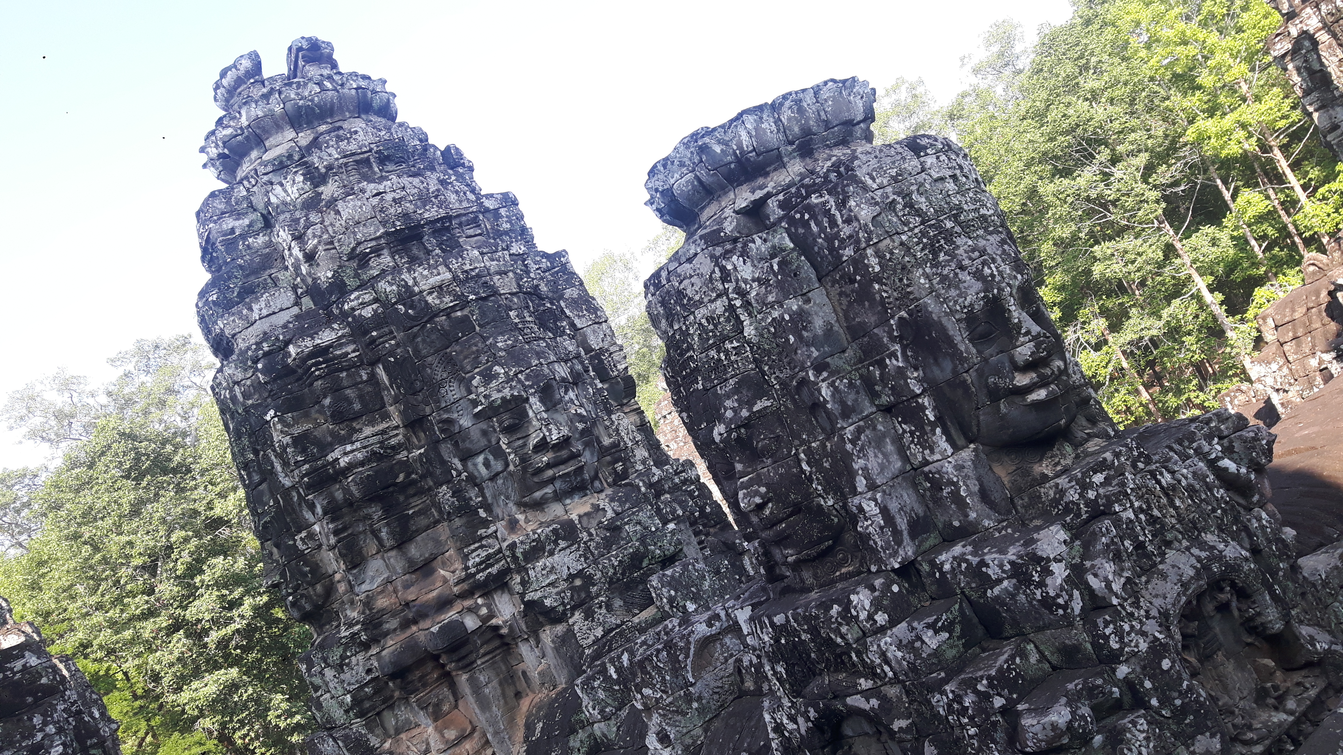 Im Anschluss sind wir dann nach Angkor Thom gefahren, das über fünf Brücken mit riesigen Toren erreicht werden kann. Dort haben wir uns dann die Hauptattraktion Bayon angeschaut. Auch nochmal ein absolutes Highlight. Er war der Haupttempel des damaligen kambodschanischen Königs und ist von insgesamt 216 Gesichtern gesäumt. Das verleiht dem ganzen ein mystisches und beeindruckendes Gefühl. Am Schluss haben wir uns noch den Banteay Kdei angeschaut, der auch schön, aber schon sehr zerfallen und bewachsen war.