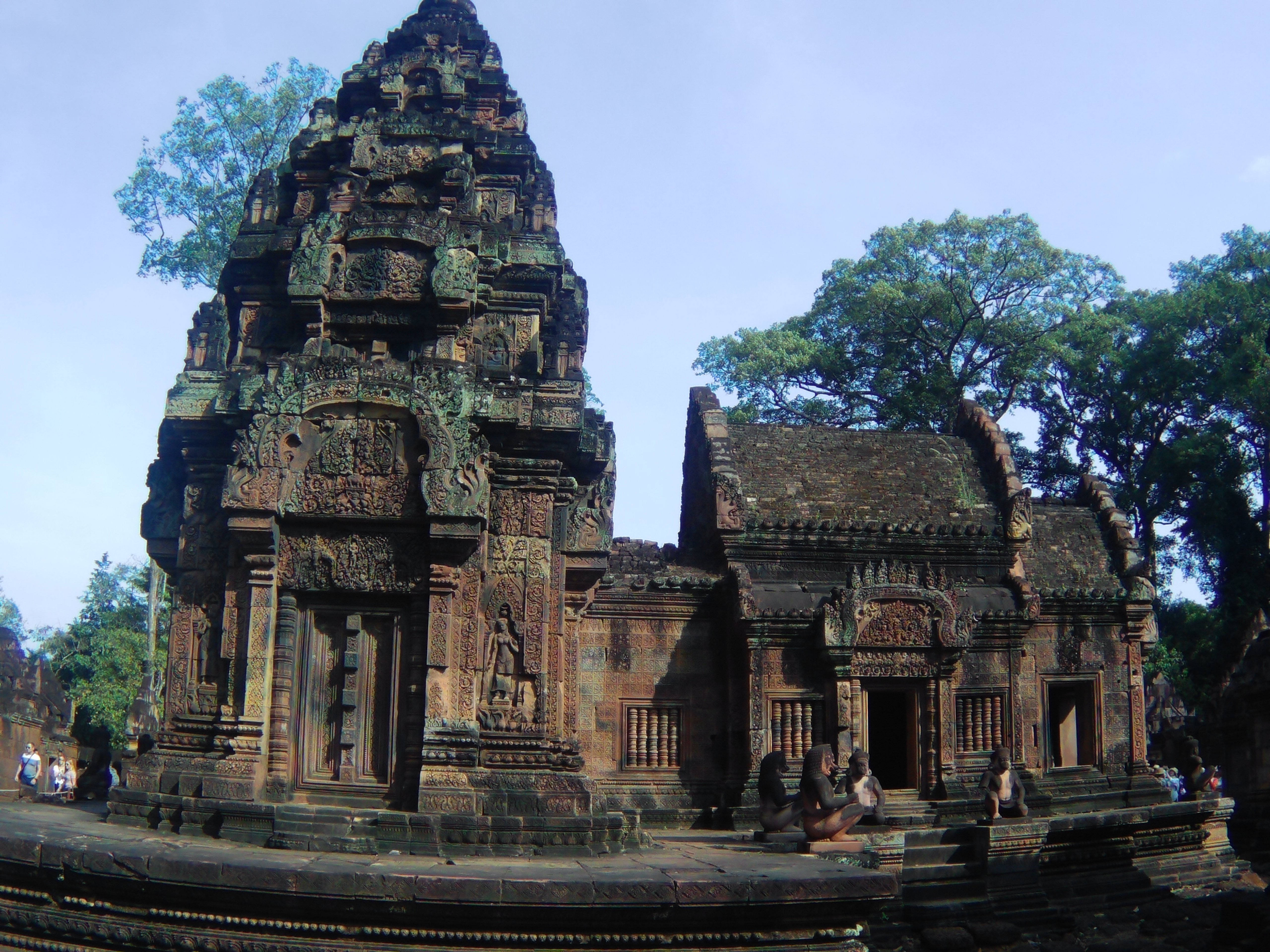 Am ersten Tag haben wir die Tempel besucht, die im weiteren Umkreis von Angkor liegen. An diesem Tag haben wir sehr viel Zeit damit verbracht zwischen den einzelnen Tempeln hin und her zu fahren, da die Entfernungen ziemlich groß waren. Wir waren am Banteay Srei, der mit seinen vielen kleinen Reliefarbeiten zu den kunstvollsten Tempeln zählt. Außerdem haben wir die Tempel von Ruluos besucht, welche die allerersten Tempel (9. Jahrhundert) in der Gegend waren und somit den Beginn der klassischen Khmer-Kunst kennzeichnen. Die Tempel um Angkor herum wurden dann erst im 11./12. Jahrhundert errichtet.