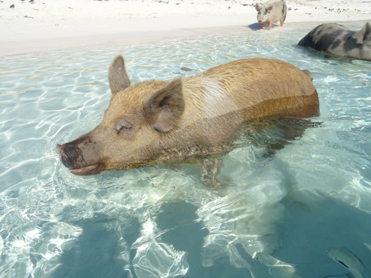 Da wir auf den Bahamas auch unbedingt die bekannten schwimmenden Schweine sehen wollten, entschlossen wir uns dort eine Tour zu machen. Da die meisten Touren mit ca. 400 USD völlig überteuert waren, entschieden wir uns für die günstigere Variante mit „Powerboat Adventures“ für 219 USD pro Person. Dieser Trip ging über den ganzen Tag und beinhaltete verschiedene Aktivitäten.