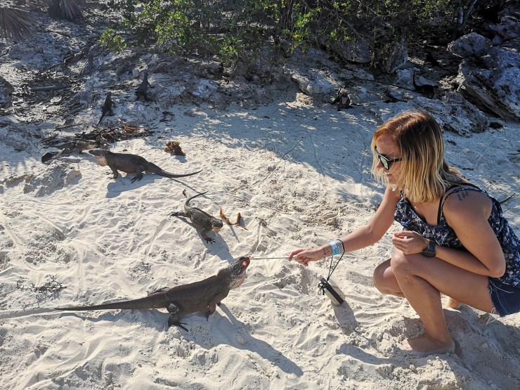 Zuerst ging es vom Bootsanleger in Paradise Island ungefähr 1 Stunde mit dem Speedboot auf’s offene Meer hinaus. Dort kamen wir auf eine kleine Insel, wo wir Leguane mit Weintrauben füttern konnten.